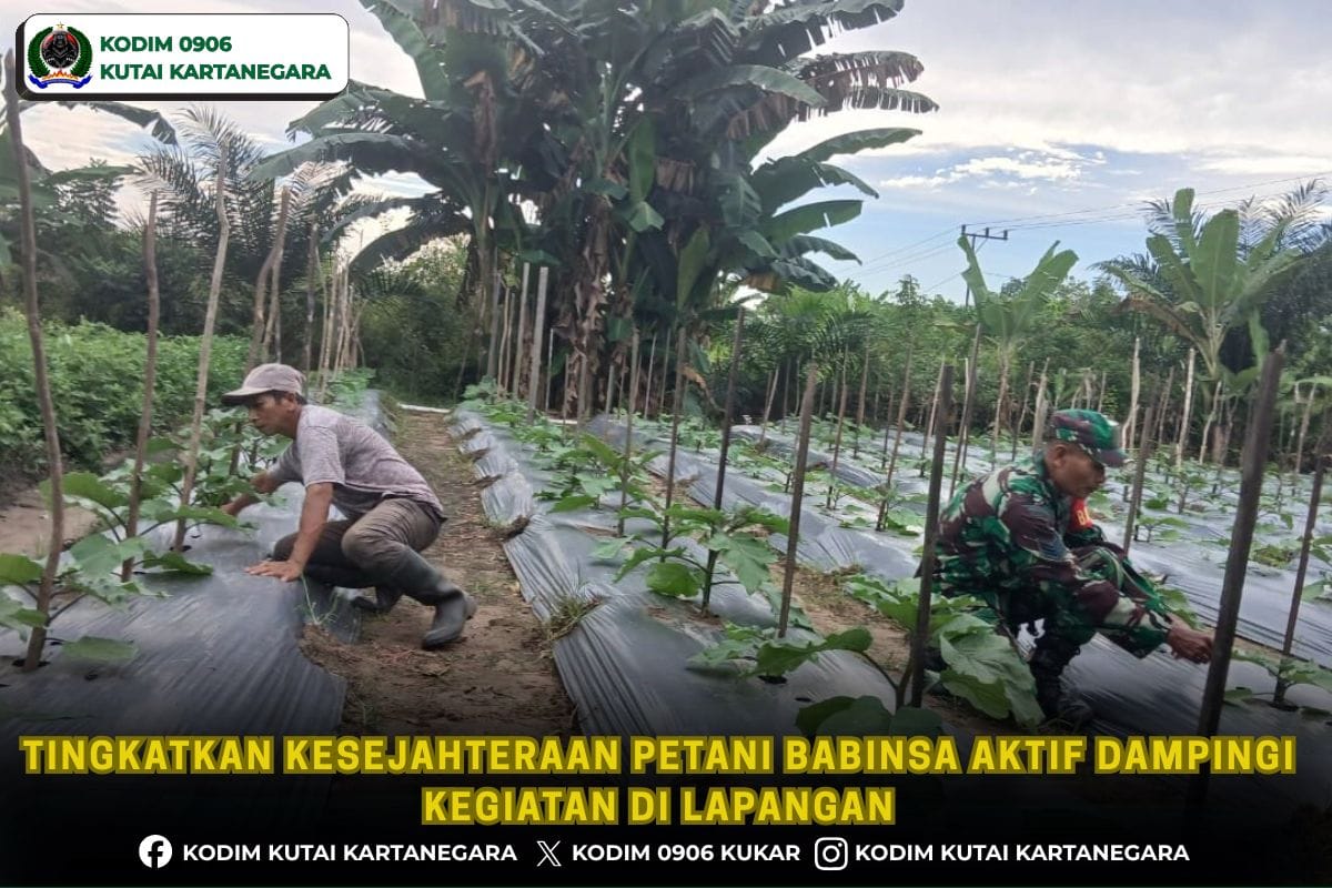 Kutai Kartanegara. germaspekad.com- Dalam mendukung meningkatkan kesejahteraan petani yang ada di wilayah binaan, anggota Babinsa Koramil 0906-08/Muara Kaman Serma Makbul melakukan pendampingan kepada petani terong yang berada di wilayah binaan tepatnya rt 08 Desa Muara Kaman Ulu Kecamatan Muara Kaman, Senin 20/4/26.