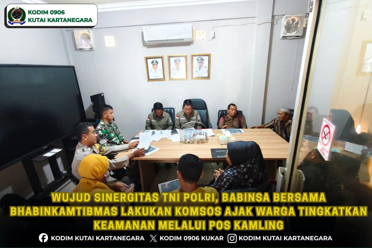 Kutai Kartanegara. germaspekad.com- Jaga stabilitas keamanan dan ketirtiban yang ada di lingkungan masyarakat, anggota Koramil 0906-02/Loa Kulu Serma Siswanto bersama bhabinkamtibmas lakukan kegiatan komsos dengan perangkat desa dan warga bertempat di ruang aula yang berada di Desa Jongkang Jalan Mangkunegara rt 3 Kecamatan Loa Kulu, Rabu 15/4/26.